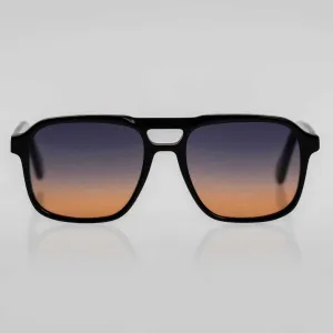 Peça que transforma o clássico em uma declaração de estilo ousada. Este modelo exclusivo combina a solidez da armação em preto com o brilho hipnotizante das lentes inspiradas no crepúsculo.